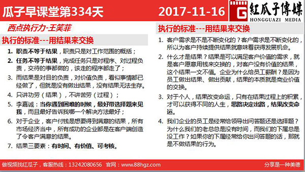 2、什么才是結(jié)果?結(jié)果是可以滿足客戶價值的需求,就是客戶愿意用錢來交換的,對客戶沒有價值的結(jié)果,這個結(jié)果一文不值。企業(yè)為什么給員工薪酬?是因為員工做出結(jié)果、做出貢獻,結(jié)果的本質(zhì)就是商業(yè)價值的交換。