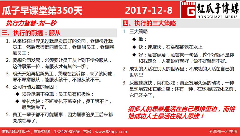 紅瓜子早課堂第350期:執(zhí)行力智慧之執(zhí)行的前提-服從及執(zhí)行的三大策略