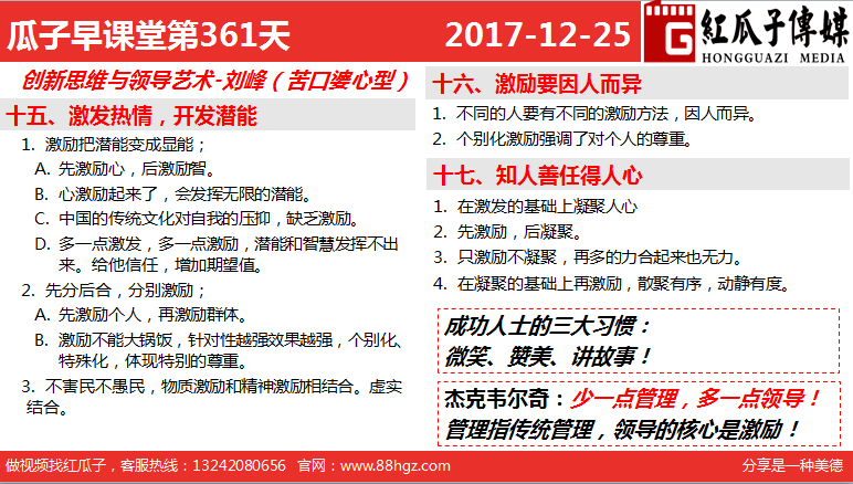 1、不同的人要有不同的激勵(lì)方法,因人而異。