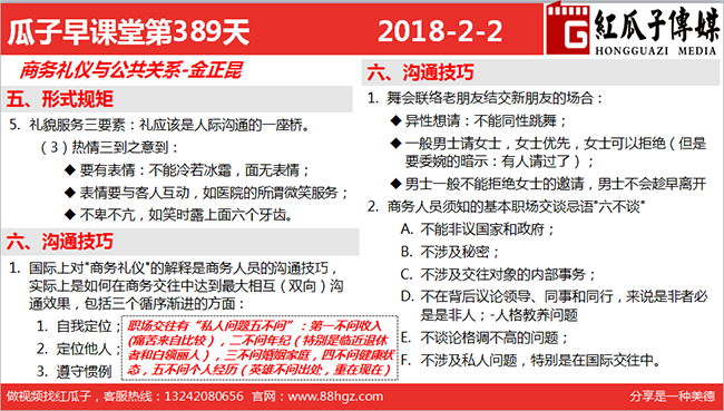 1. 國(guó)際上對(duì)“商務(wù)禮儀”的解釋是商務(wù)人員的溝通技巧,
