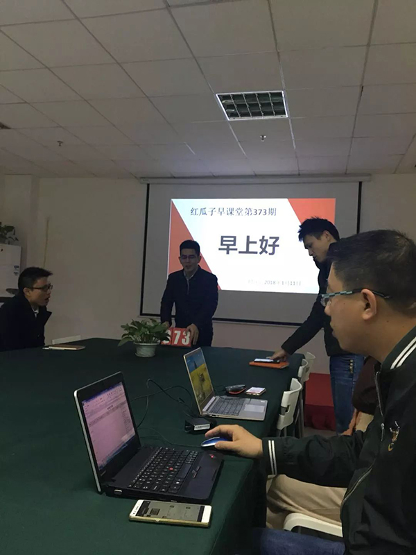 7、拍照合影留念;班長(zhǎng)負(fù)責(zé)編輯合影背景文字(紅瓜子早課堂第xx期),收集早課堂記錄照片并分享到紅瓜子傳媒微信群