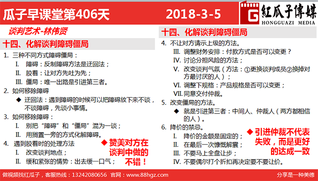 ◆迂回法:遇到障礙的時(shí)候可以把障礙放下來不談,不談?wù)系K,先談小事情。