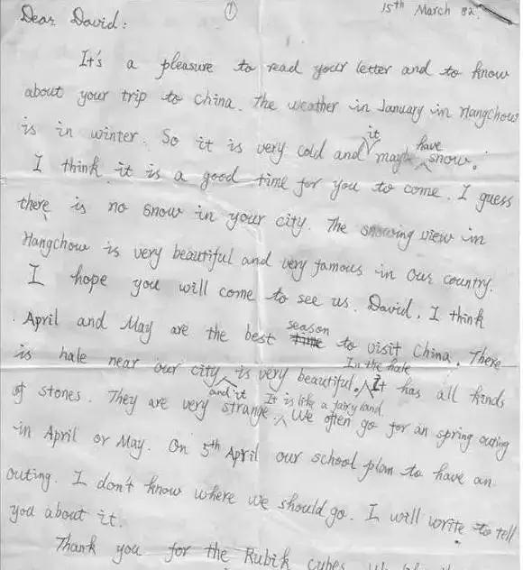 Ken 不僅會給馬云回信,還會順便輔導馬云的英文寫作,以此來鼓勵馬云繼續(xù)學習英文:“來信把行距留大一些,我好給你寫修改意見?!?/span>