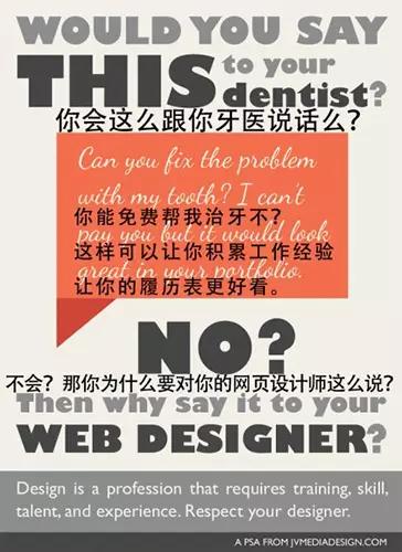 即使你認(rèn)為到嘴的鴨子不能飛了,你也要明確正式的合作關(guān)系,以及前期合作的具體費(fèi)用,當(dāng)然支付時(shí)間可以商量。領(lǐng)導(dǎo)的臭脾氣都是下屬慣出來的,設(shè)計(jì)在售前是一個(gè)心理博弈的過程,你的高姿態(tài)會給你帶來真正的尊重,從商務(wù)上來看,被騙得最慘的就是先給貨后結(jié)算的,難道不是么?一個(gè)提案如果在客戶看來沒有任何成本可言,也就降低了他的重視程度和評價(jià)尺度,你的設(shè)計(jì)在無形中已經(jīng)被貶值了。事實(shí)是,你的免費(fèi)提案并不會讓你的作品質(zhì)量和合作機(jī)會等到提升。不少設(shè)計(jì)師礙于面子,覺得完全拒人于千里之外也是不好的,因此對一些“看上去”價(jià)值含量較低的工作就采取先嘗后買的態(tài)度。你錯(cuò)了,抓緊機(jī)會吃免費(fèi)的午餐是所有不正規(guī)的客戶的慣用伎倆。