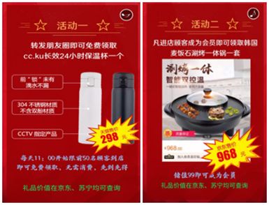引流產(chǎn)品是,你轉(zhuǎn)發(fā)朋友圈即可免費(fèi)領(lǐng)取價(jià)值298元的保溫杯一個(gè)(限名額、時(shí)間)。開門產(chǎn)品是,凡是進(jìn)店顧客成為會(huì)員即可免費(fèi)領(lǐng)取價(jià)值968元的韓國(guó)麥?zhǔn)堜炭疽惑w鍋一套。