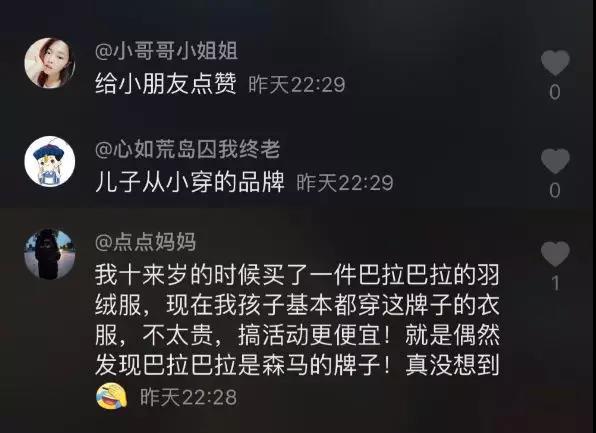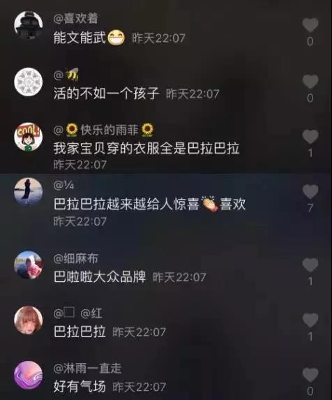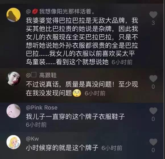 在評論中,無數(shù)網(wǎng)友開啟了對這個國民童裝品牌的熱議,很多人感慨自己是穿著巴拉巴拉衣服長大的,成為了父母還在繼續(xù)給孩子穿,看到這條視頻,無意中引起了很多童年的記憶和共鳴。
