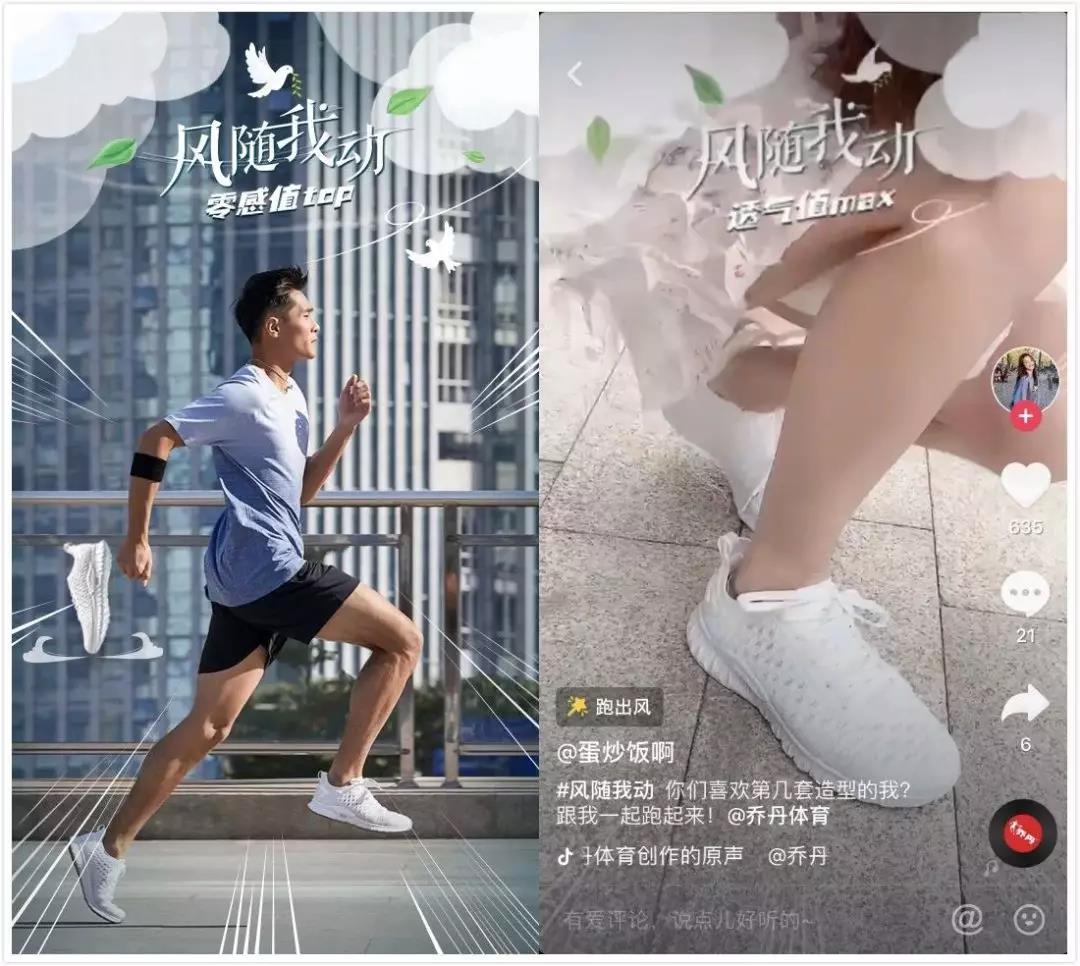 在深入調(diào)查跑步人群的心理后,喬丹體育發(fā)現(xiàn)每一位跑者都享受與風(fēng)互動(dòng)的感覺(jué)。為此喬丹探尋全新的跑鞋呼吸方式,希望能夠給予雙腳足夠的“風(fēng)力”,馳騁跑道。針對(duì)這一概念,喬丹體育發(fā)起主題為“風(fēng)隨我動(dòng)”的抖音挑戰(zhàn)賽,并攜一眾跑步達(dá)人組成追風(fēng)聯(lián)盟,號(hào)召天生跑者加入這場(chǎng)“追風(fēng)挑戰(zhàn)”。