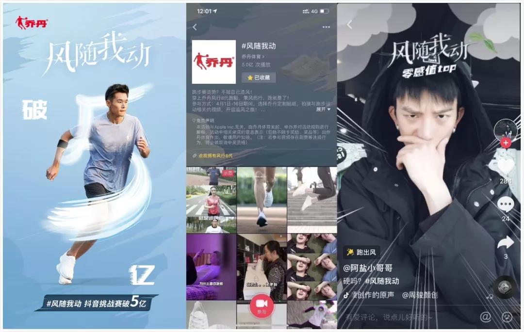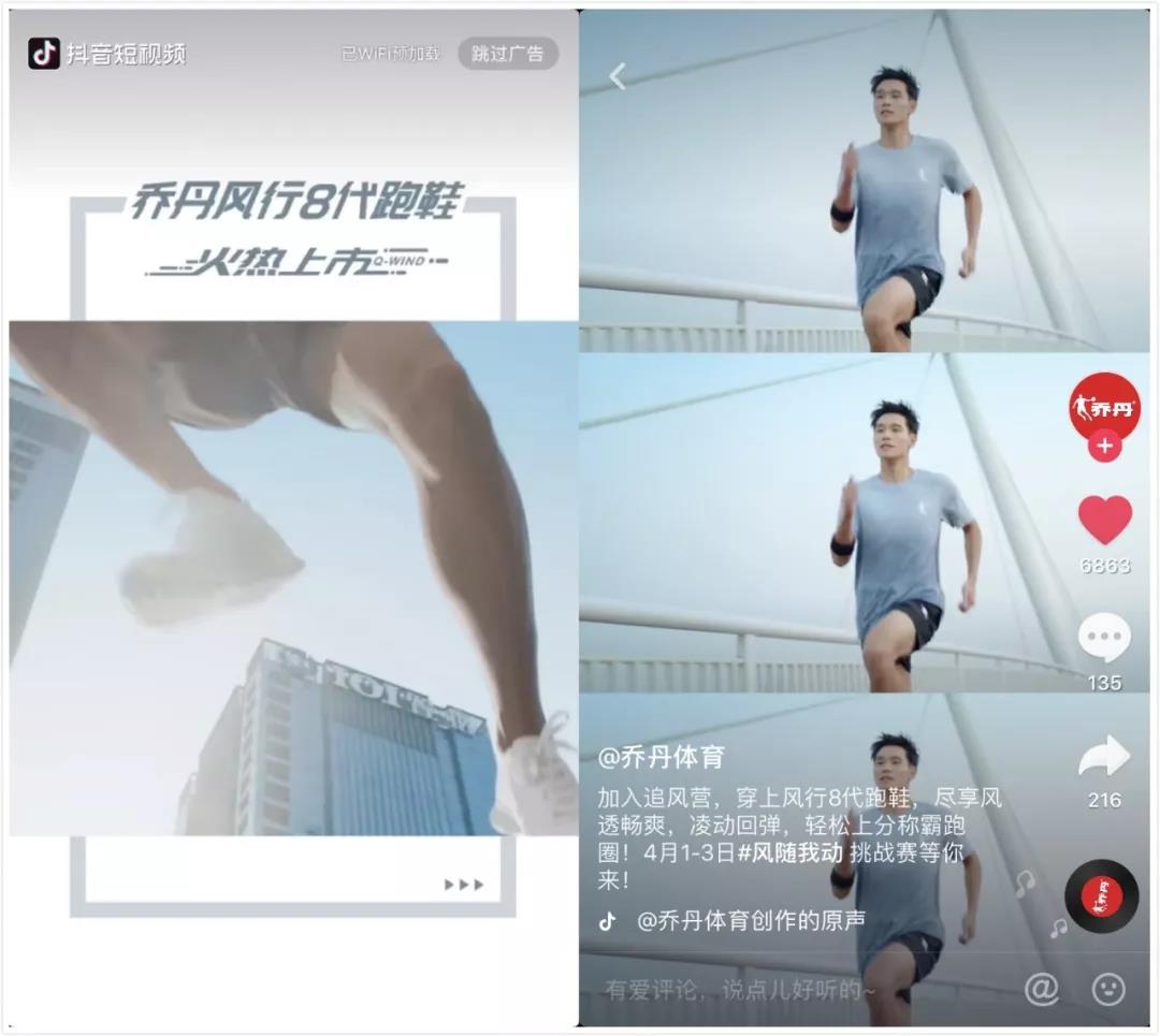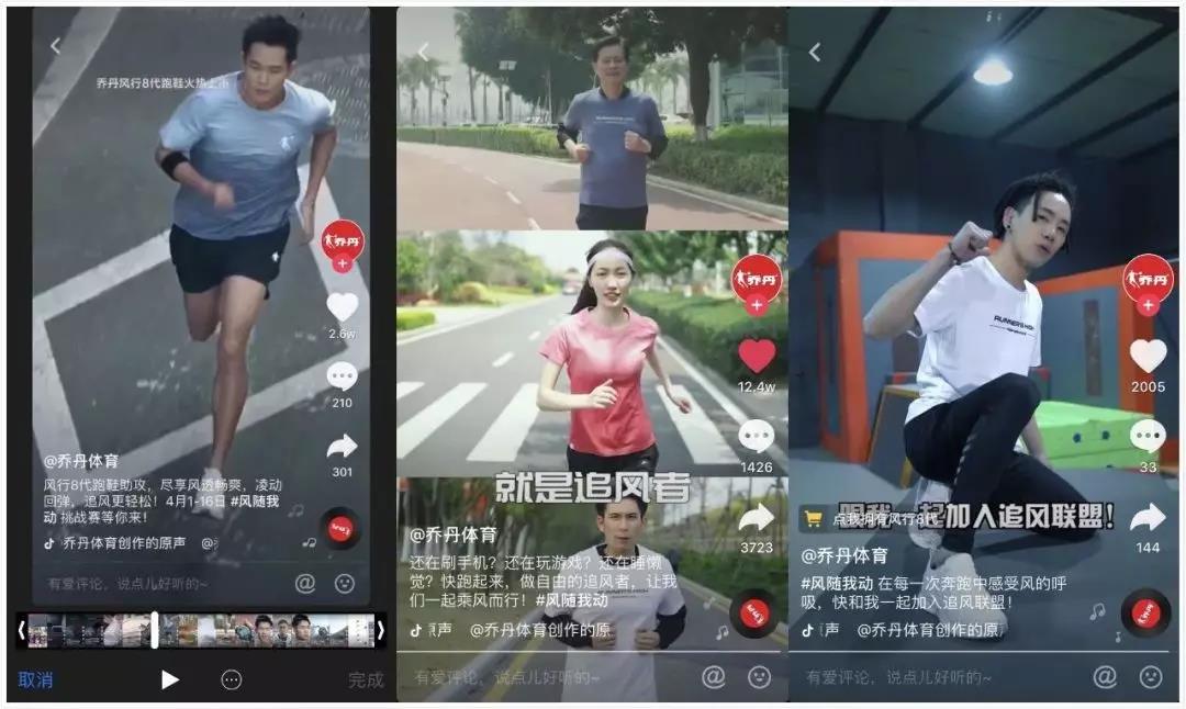 為此,喬丹從“跑步人群”的洞察出發(fā),在抖音平臺(tái)上發(fā)起一場(chǎng)“追風(fēng)”挑戰(zhàn)。借助抖音平臺(tái)多種營(yíng)銷(xiāo)玩法,和消費(fèi)者進(jìn)行深度互動(dòng),成功打造超級(jí)新品。