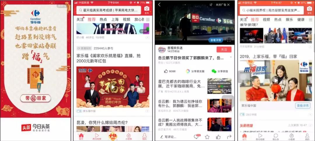要把握日益稀缺的注意力,傳播環(huán)節(jié)的精準(zhǔn)快速必不可少。而巨量引擎為品牌主提供的,就是覆蓋多場景的投放資源。在家樂福的TVC傳播中,今日頭條王牌硬廣及巨量引擎全系特色產(chǎn)品投放使總曝光達到25,970,000,總點擊量達到842,000,平均點擊率3.25%。