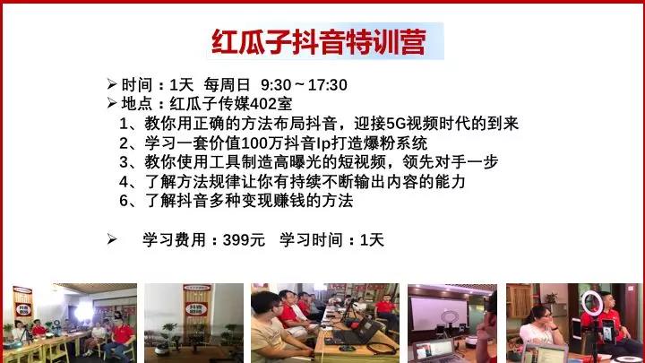 5G時(shí)代來臨,信息以短視頻形式來傳播,抖音是全球短視頻流量最大的平臺,沃爾瑪一條抖音增加2000萬收入,一條抖音為華為手機(jī)單店增加650萬收入,怎樣用好抖音,對我們個(gè)人和公司都非常重要,紅瓜子抖音研究院每天都有組織《抖音劇場》節(jié)目和每周日都舉行《抖音特訓(xùn)營》培訓(xùn),歡迎大家積極參加。