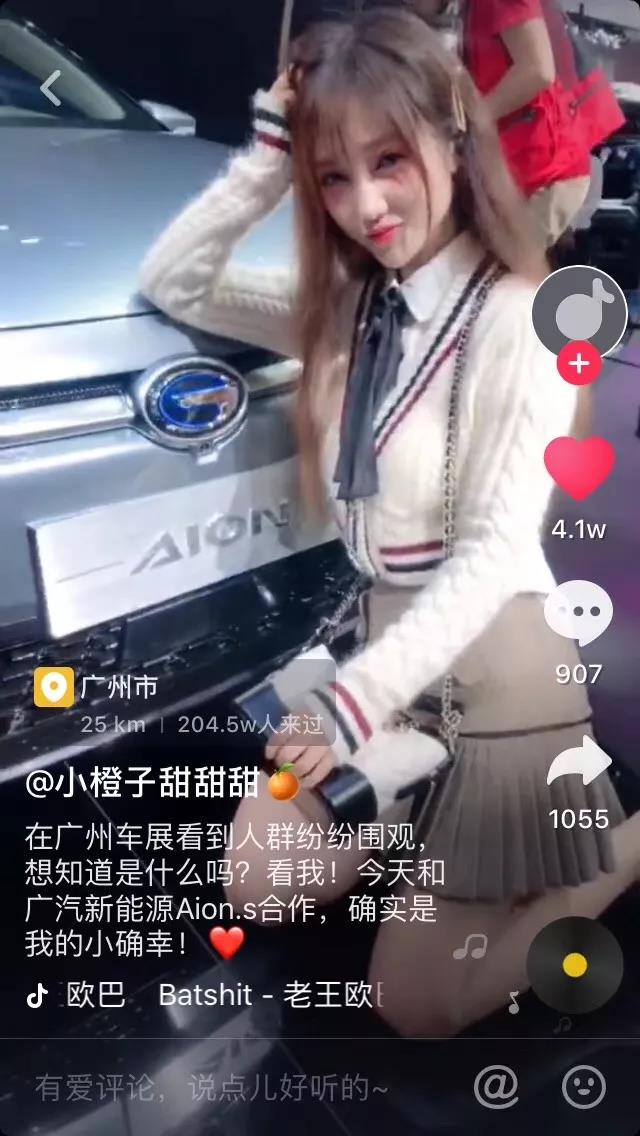 雖然在廣州車展前,Aion S就已收獲了大批粉絲,但在廣州車展期間,廣汽新能源仍順勢而為,利用抖音KOL到展臺打卡Aion S、邀請外國人挑戰(zhàn)“Aion”發(fā)音等玩法,借勢引爆Aion S關注度。眾多抖音網紅到廣汽新能源展臺上打卡與Aion S互動,使Aion S獲得了持久的話題熱度,持續(xù)“收割”新粉,其中一條視頻更是登上了抖音閱讀量超過4000萬次的“2018廣州車展”話題的第二名,讓刷到此話題的用戶們輕而易舉地看到Aion S的宣傳視頻,迅速為新車擴大知名度。