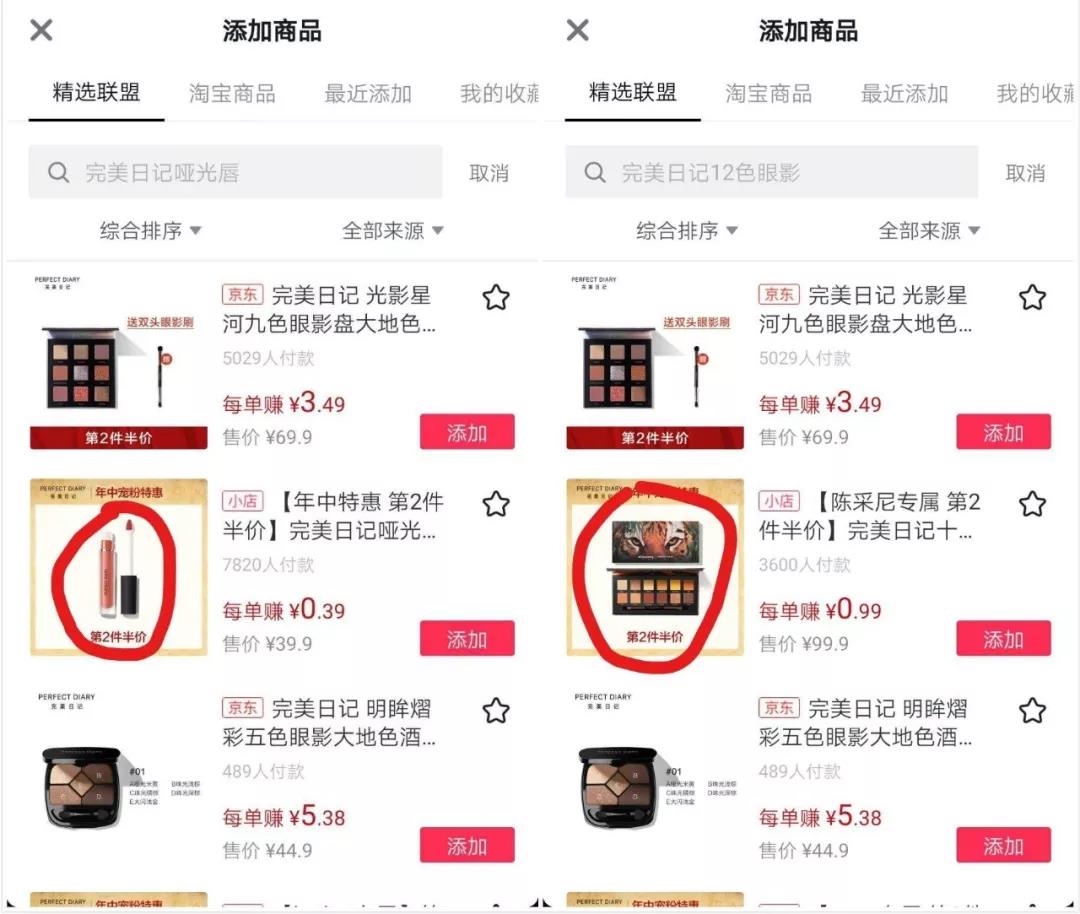 比如“12色眼影”這款新產(chǎn)品,完美日記直接和抖音美妝大號華星酷娛的“陳采尼”進行合作。
