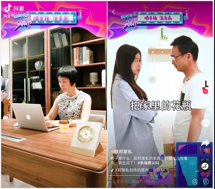 幸福源自生活日常,聯(lián)邦家私基于這樣的社會(huì)洞察以及對消費(fèi)人群心理的準(zhǔn)確把握,拍攝多條官方創(chuàng)意視頻、達(dá)人創(chuàng)意視頻。針對情侶、白領(lǐng)、孩童等不同人群特征,深挖其生活細(xì)節(jié)并予以戲劇化的故事演繹,將聯(lián)邦家私“打破焦慮、擊穿平淡”的核心品牌理念傳遞給圈層用戶。