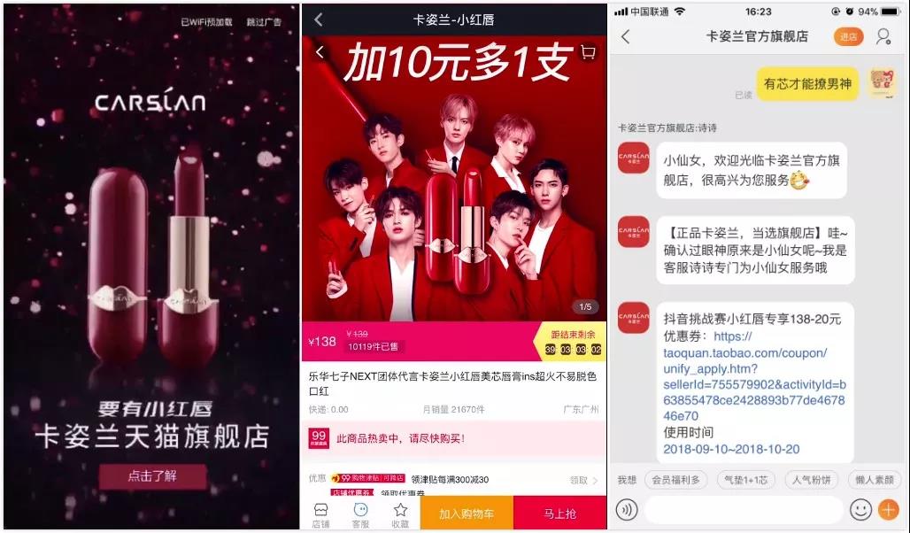 卡姿蘭Pick樂華七子為小紅唇站臺,正是看中樂華七子粉絲高昂的參與熱情。明星站臺+粉絲效應加持,卡姿蘭小紅唇在抖音引起了種草浪潮。
