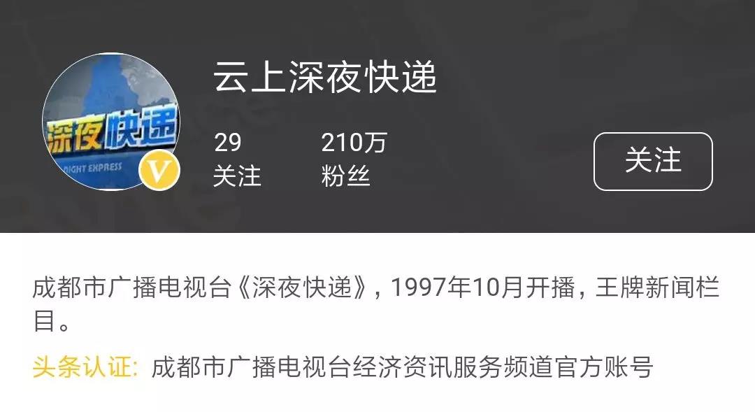 第三類是以「云上深夜快遞」為代表的傳統(tǒng)節(jié)目全媒體化轉(zhuǎn)型。這是脫胎于王牌節(jié)目《深夜快遞》的IP,經(jīng)濟頻道新聞部60多名記者全部轉(zhuǎn)型為全媒體記者,不光要生產(chǎn)全天80分鐘的電視新聞,還要學(xué)會資訊內(nèi)容切條、分發(fā)以及新聞直播,三個月這一IP積累了210萬頭條號粉絲。